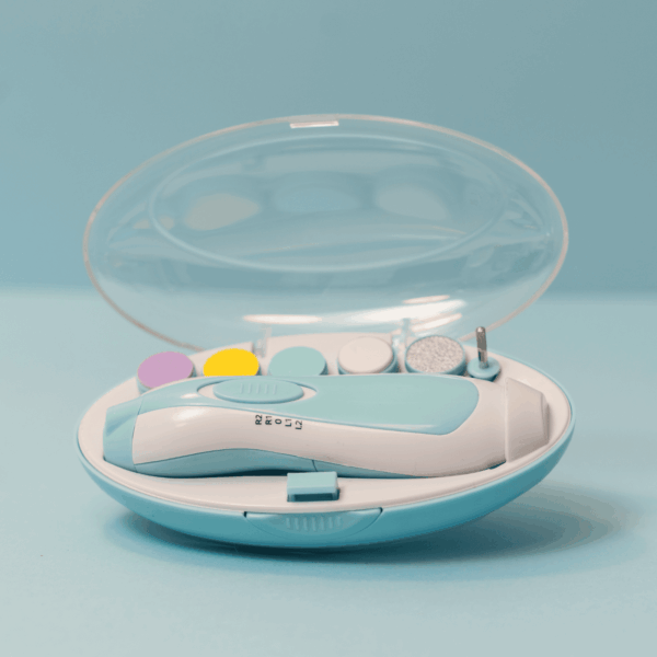 Skånsom og sikker neglefilning for babyer og voksne Trykaktiveret stopsystem for at forhindre skader Stille motor perfekt til når baby sover LED-lys for præcis neglepleje, selv i mørke Fem udskiftelige slibepuder, tilpasset alderen To rotationsretninger